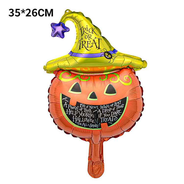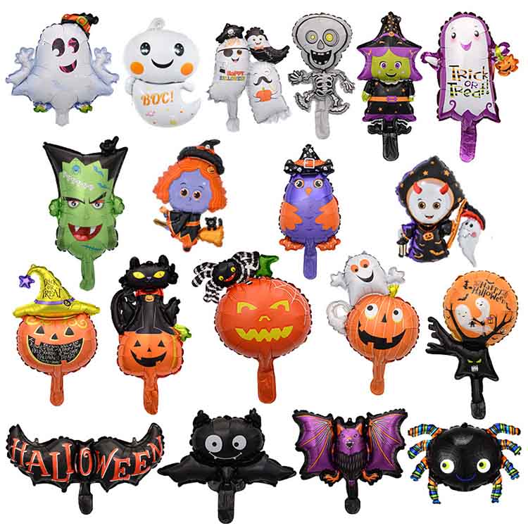 Ta aluminijasti film balon združuje klasične elemente za noč čarovnic, kot so lobanje, bučne luči, netopirji, pajki itd. Karikat je luštna in nekoliko čudna. Mini velikost lahko zlahka ustvari močno praznično vzdušje, ne glede na to, ali je obešen sam ali postavljen v kombinacijo.