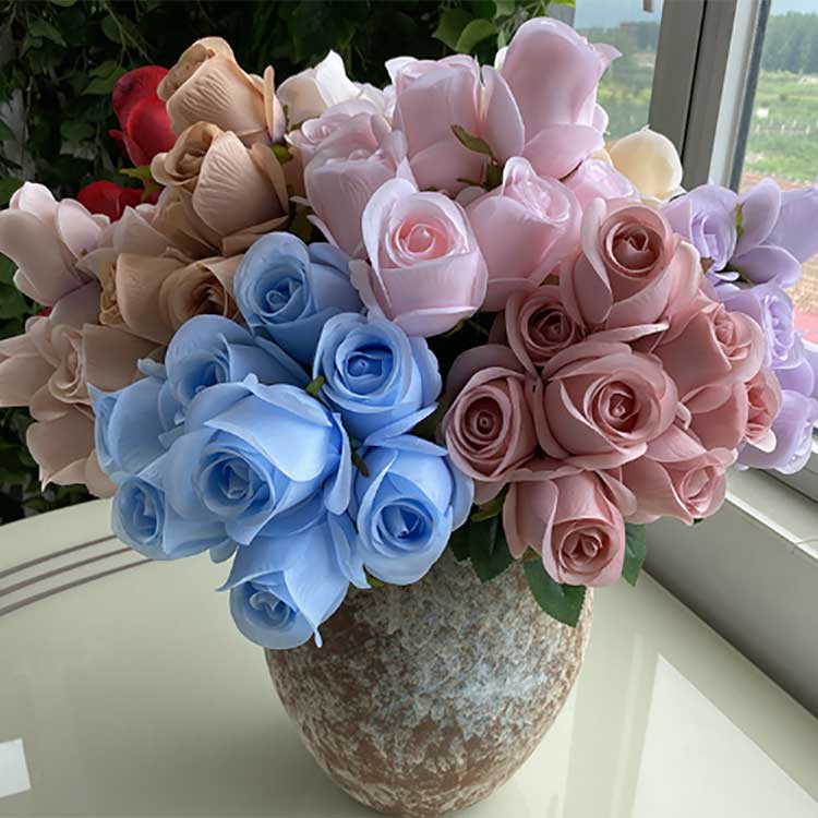 Žive barve: umetno rožo odlikujejo živahni, živahni toni. Klasična kombinacija bele, roza in rumene barve ustvarja močan vizualni učinek; roza, rumena in druge barve prav tako ustvarjajo srčkan in romantičen občutek. Te barve ne le pritegnejo pozornost ljudi, ampak ustvarijo tudi romantično vzdušje.