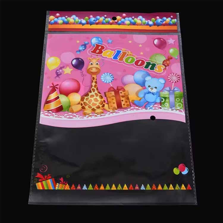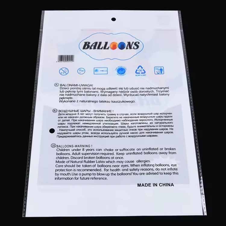 Balonske embalažne vrečke so običajno narejene iz CPP (litega polipropilenskega) materiala. Ker ima CPP film dobro prožnost in hladno odpornost, je zelo primeren za izdelavo balonskih vrečk. Hkrati sta tudi prosojnost in sijaj materiala CPP zelo visoka, kar lahko bolje pokaže barvo in vzorec balonov. Poleg tega imajo CPP materiali dobro plastičnost in jih je enostavno tiskati, sestaviti in obdelati, kar lahko ustreza različnim zahtevam balonskih vrečk.