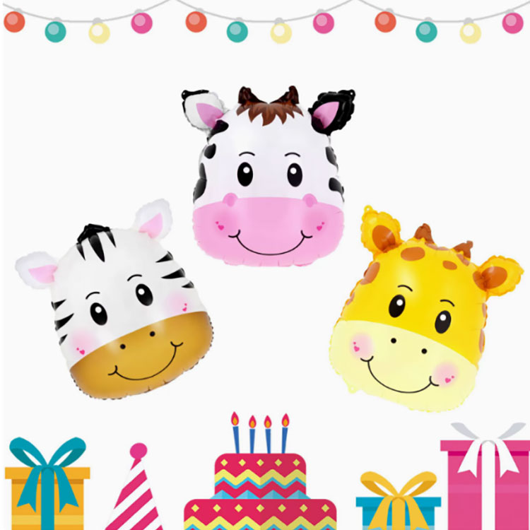 Folijski balon z glavo živali uporablja tehnologijo tiskanja visoke ločljivosti, kar ima za posledico živahne barve in obnovi ljubko podobo živali. Vsebujejo različne živali, kot so gumijaste račke, pande, žirafe, lisice, sloni, zebre in zajci, ki skrbijo za različne teme.