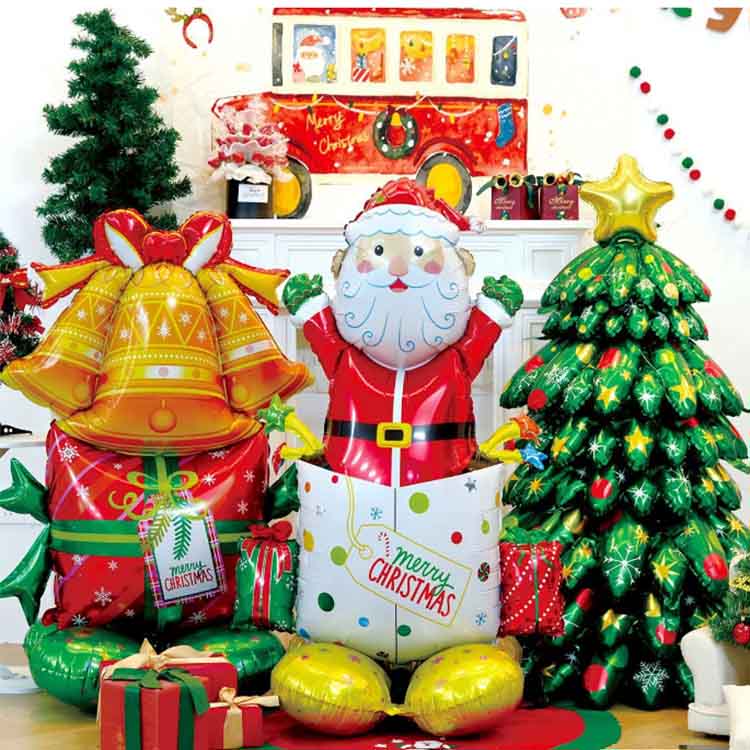 Božični baloni iz aluminijaste folije so posebej oblikovani za prihajajočo božično sezono. Tovarniško izdelani iz visokokakovostne aluminijaste folije imajo kovinsko teksturo in so fleksibilni. Ko so napihnjene, ustvarijo tridimenzionalno obliko, so odporne na zlom in puščanje ter dolgo časa ohranjajo polnost.