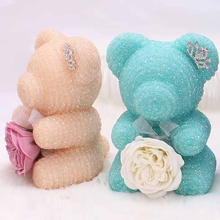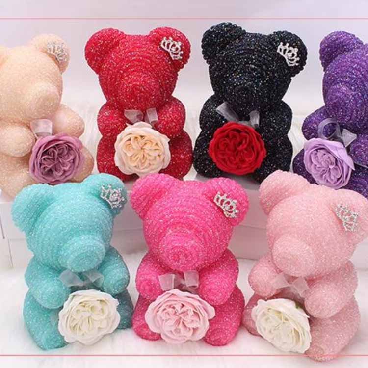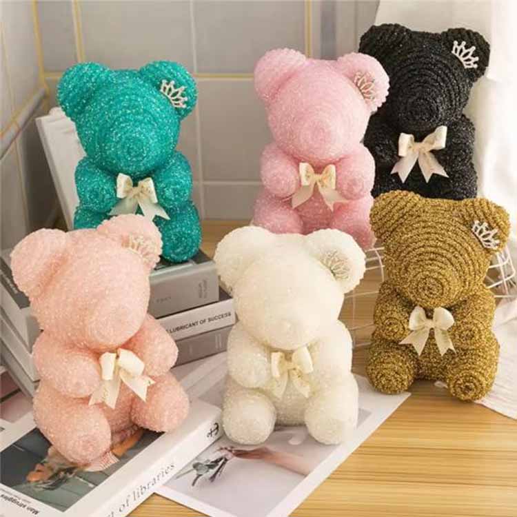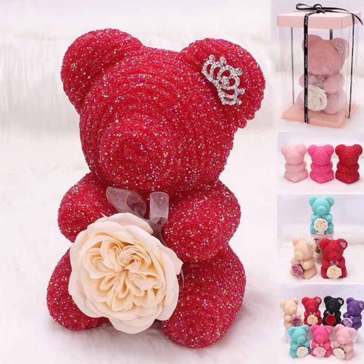 Diamond Rose Bear je predmet med medvedom iz umetnih diamantov in okrašen z rožami, krono, lokom in drugimi dodatki. Lahko ga dajemo kot darilo ljubljeni osebi ali prijatelju ali ga uporabimo kot dekoracijo.