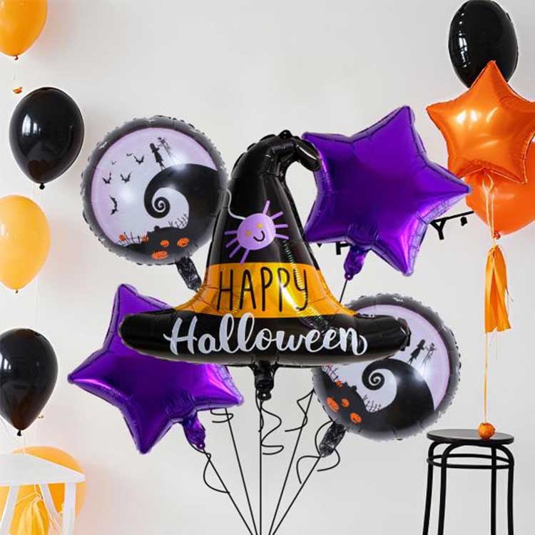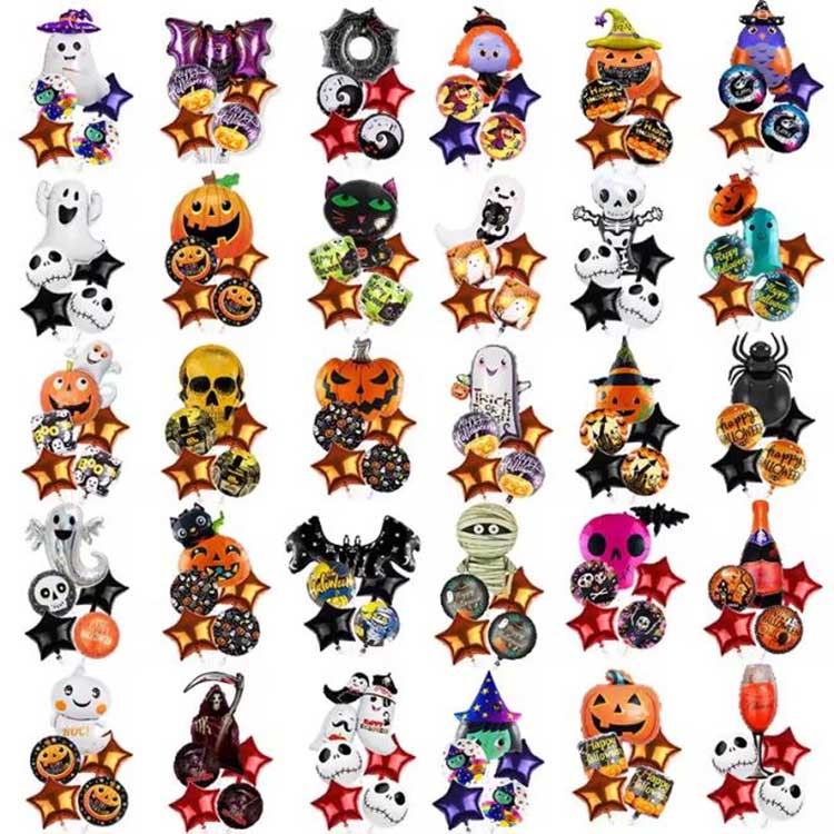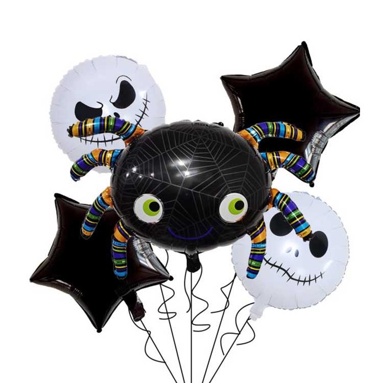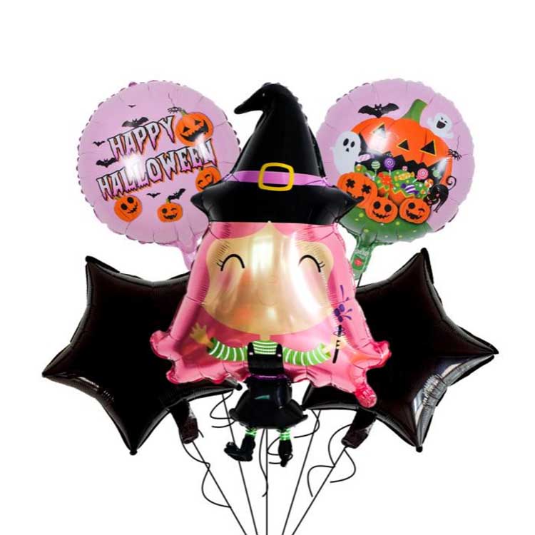 Petdelni komplet za noč čarovnic je balonski komplet, zasnovan posebej za noč čarovnic. Običajno je sestavljen iz folijskih balonov, balonov iz lateksa in drugih dodatkov. Skupaj vključuje pet vrst balonov! Vsak komplet ima vzorec ali znak, ki se popolnoma ujema s temo Halloween. Kot nalašč za okraske za noč čarovnic, lahko celo napolnite balone s helijem, da bodo lebdeli! To resnično okrepi skrivnostno vzdušje Halloween!