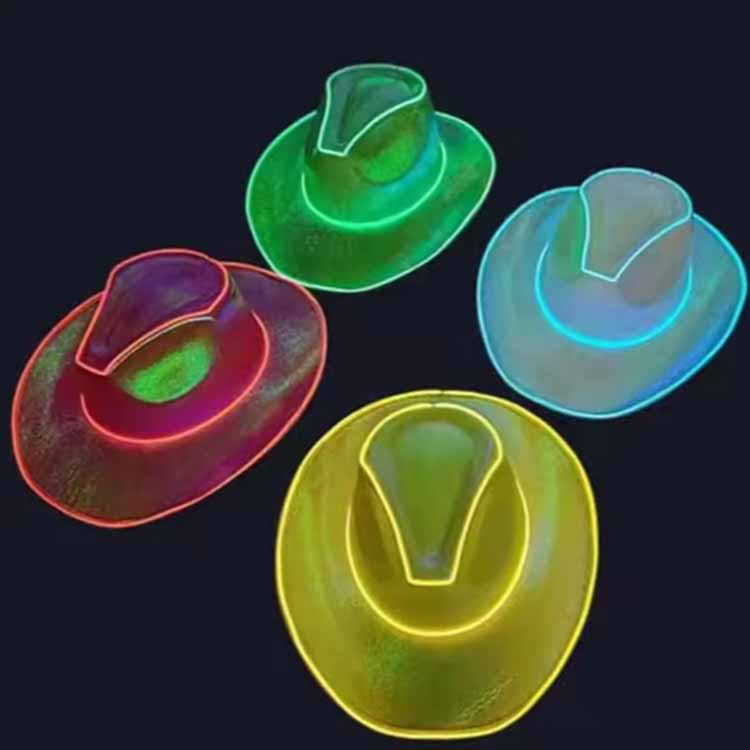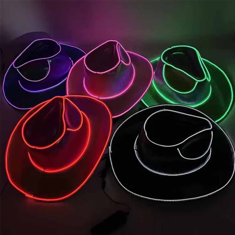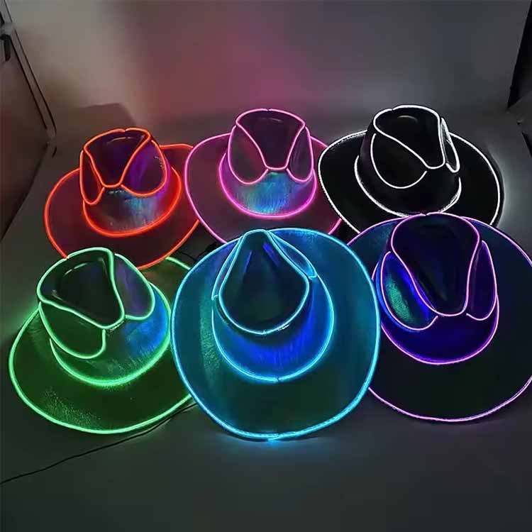 Ta LED fluorescentni pisani klobuk je enostaven za uporabo in ga je mogoče preprosto namestiti v samo 5 minutah. Preprosto vstavite dve AA bateriji, vklopite stikalo in uživajte v zabavi ob svetlečem kavbojskem klobuku.