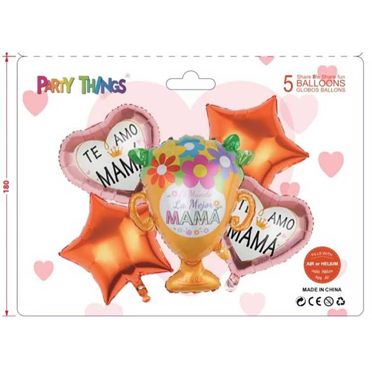 Vsak od naših kompletov balonov Happy Mother's Day je posamično pakiran v kartonsko škatlo. To preprečuje poškodbe balonov med transportom in zagotavlja, da prispejo nepoškodovani. Zunanja embalaža vsebuje informacije o izdelku in slike, ki vam omogočajo enostavno razumevanje izdelka na prvi pogled. Dizajn embalaže je preprost in uporabniku prijazen.