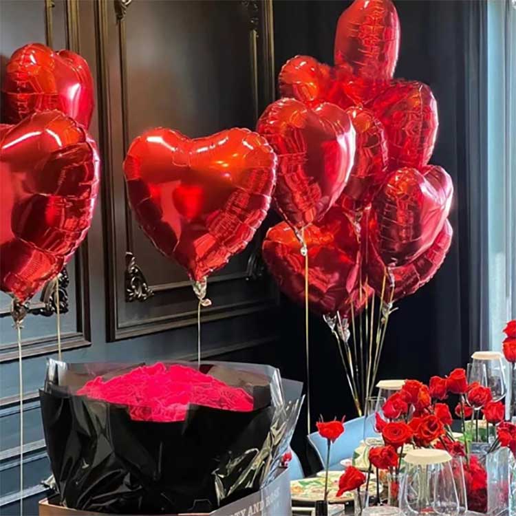 Baloni iz aluminijaste folije v obliki srca so izdelani iz zgoščenega najlonskega materiala. Ti baloni se ponašajo z živahnimi oblikami, potiskanimi z okolju prijaznimi črnili. V paketu je 50 balonov.