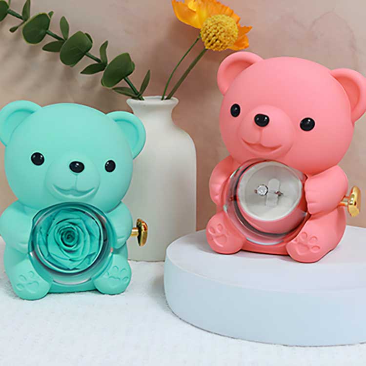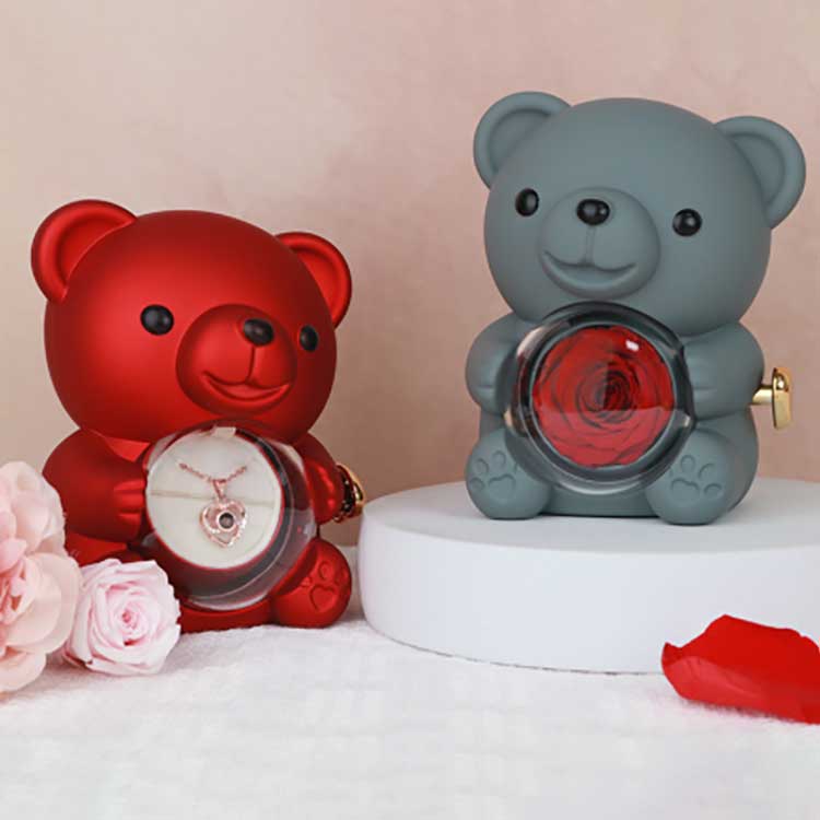 Ta škatla za nakit Hug Bear Rose se uporablja za prikazovanje na mizi, knjižni polici ali nočni omarici. Njegova najbolj pritegne pozornost je ohranjena vrtnica v sredini. Ko odprete vrtnico, se odkrije predal za shranjevanje nakita, prstanov ali spominkov.