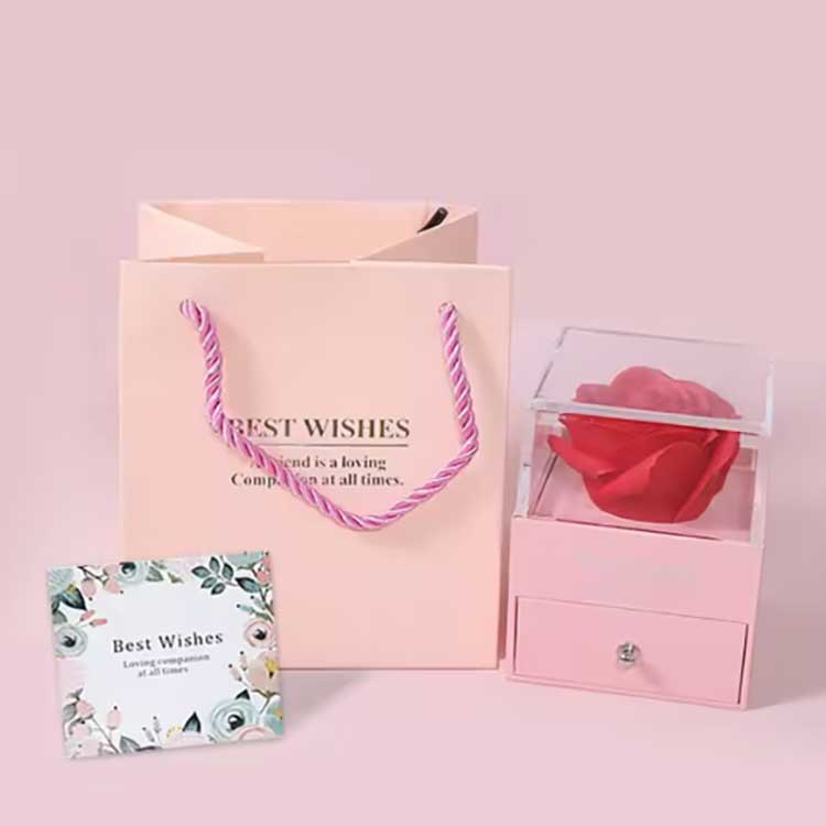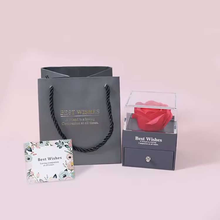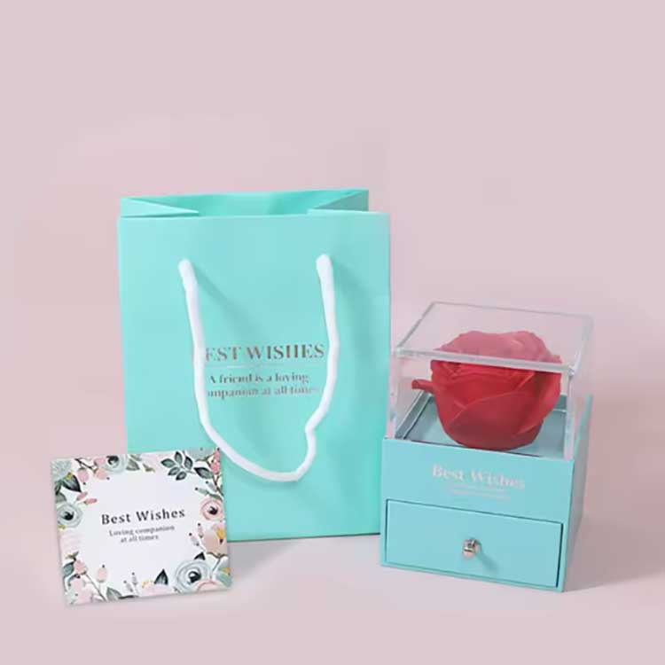 Darilna škatla Immortal Flower je priljubljen izdelek. Njegovi dodatki so izdelani iz visokokakovostnih materialov. Vsak komplet darilne škatle vsebuje svetlo vrtnico in izvrsten nakit. Ko jih prejmete, jih lahko uporabite neposredno, ne da bi jih morali namestiti sami. Prijateljem ali sorodnikom lahko v celoti izrazijo vaša čustva, zaradi česar bo vaša slovesnost polna romantike in presenečenja.