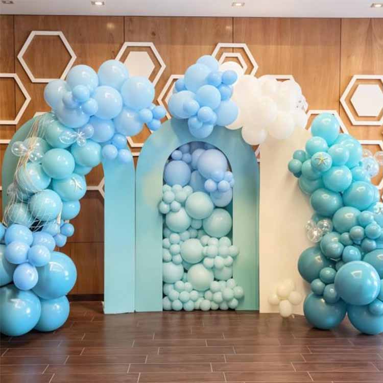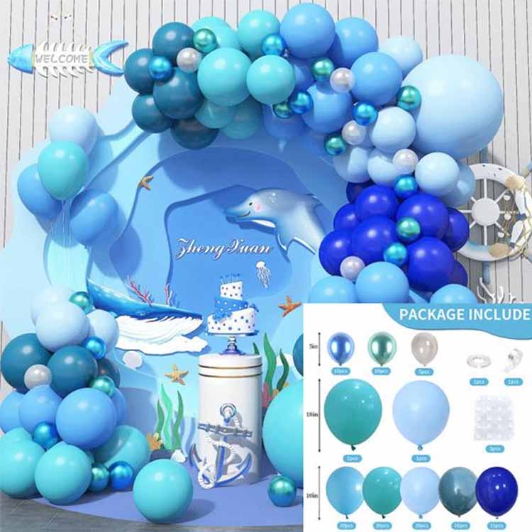 3. Baloni s posebnim učinkom: biserno modri baloni (simulirajo odseve oceana) in baloni z bleščicami (z vgrajenimi srebrnimi ali modrimi bleščicami za simulacijo podvodne svetlobe zvezd)