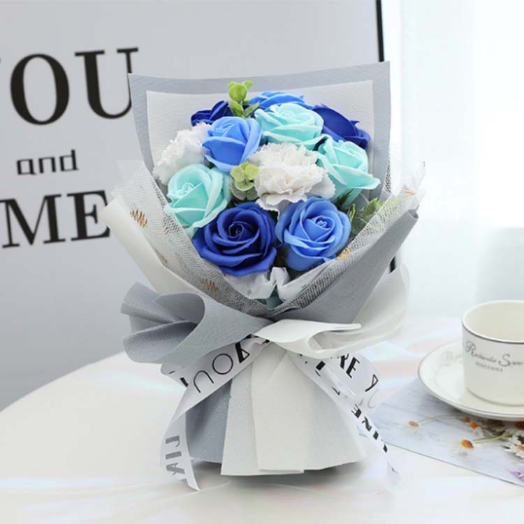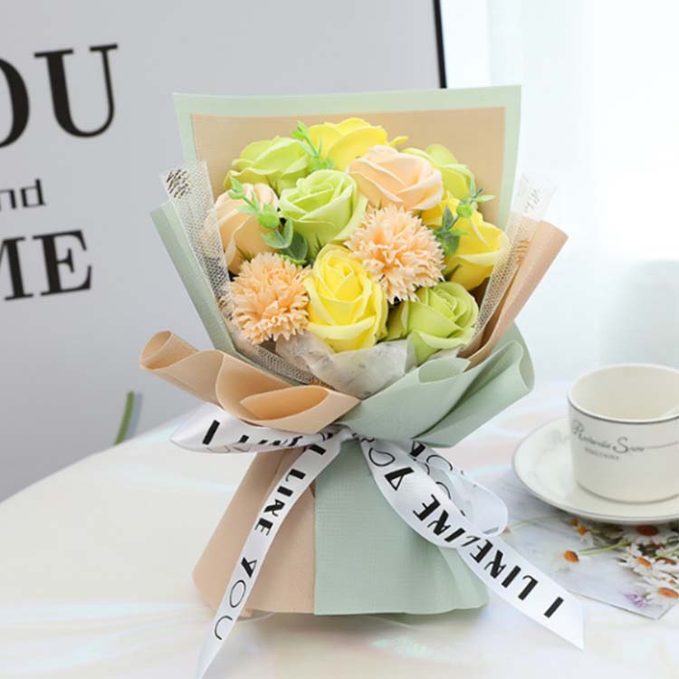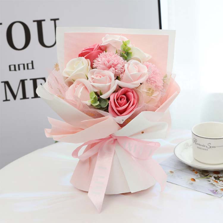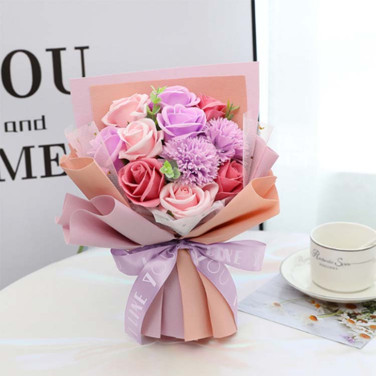 Šopek milnih cvetov je sintetični cvetlični umetniški del, izdelan iz naravne milne osnove z ročnim oblikovanjem.