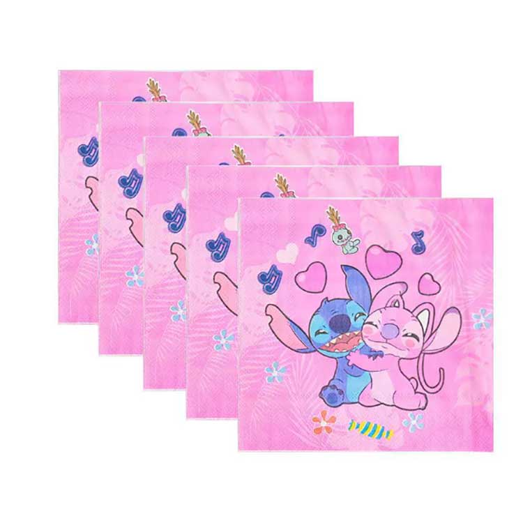 Kompleti krožnikov za enkratno uporabo Stitch so običajno zapakirani v vrečke OPP. Druga možnost je, da prilagodite svojo ekskluzivno papirnato kartico.
